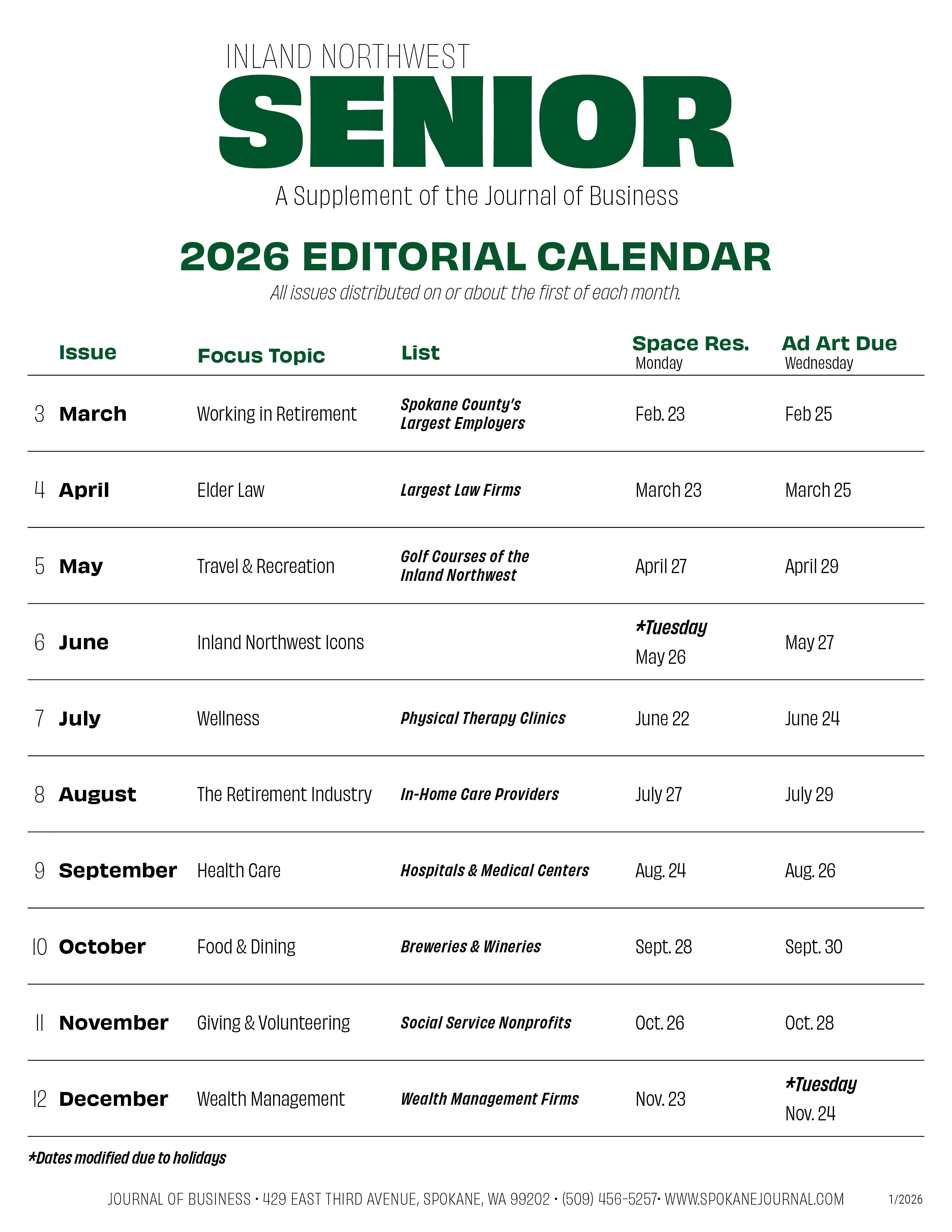» Senior Editorial Calendar