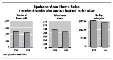 In the first 11 months of 2009, 4,308 homes were sold here through the Spokane Multiple Listing Service, down 6.9 percent from the year-earlier period.
