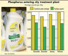 A ban on high-phosphorus automatic-dishwasher detergents imposed last July 1 in Spokane County triggered a consumer backlash that lingers today, but appears in early data to be having the desired effect of reducing the amount of the nettlesome nutrient likely being released into the Spokane River.