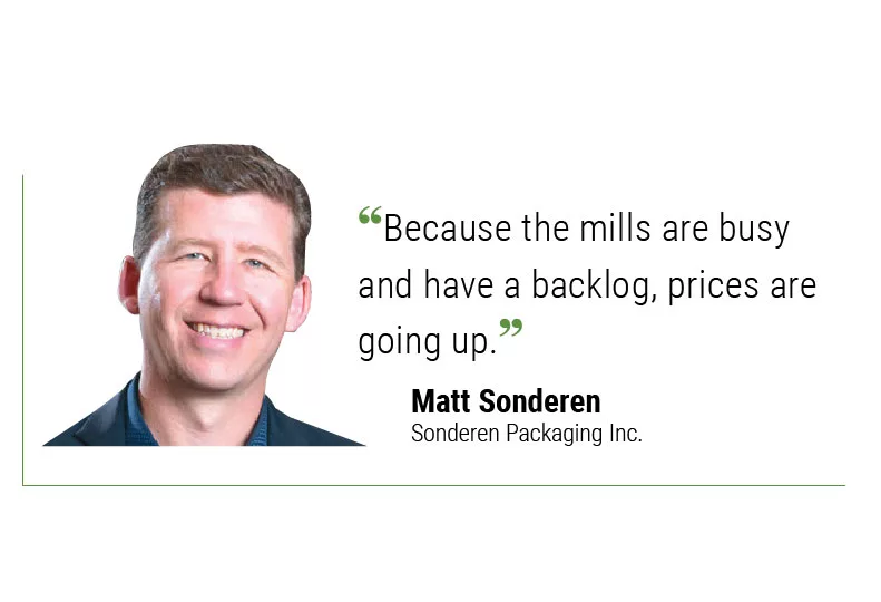 "Because the mills are busy and have a backlog, prices are going up," Sonderen says.