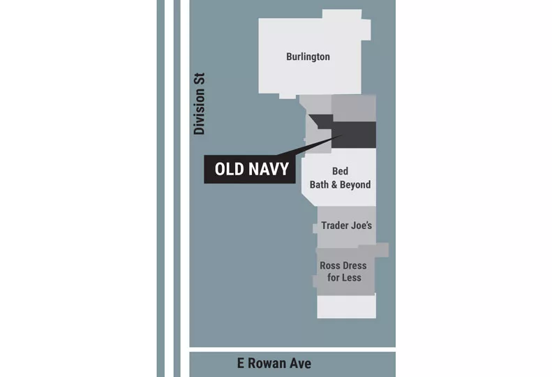 Permit application information shows work at the site includes improvements to the mechanical, electrical, and plumbing systems. The building façade also will be redesigned to match Old Navy’s signature blue color scheme, and new store signage will be installed.