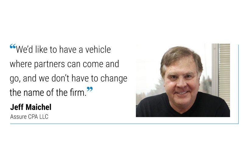 “I’m 65 years old, I’m probably not going to be working too much longer into the future,” Maichel says. “We’d like to have a vehicle in which partners can come and go, and we don’t have to change the name of the firm.”