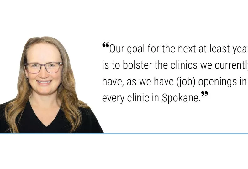 “Our goal for the next at least year is to bolster the clinics we currently have, as we have (job) openings in every clinic in Spokane,” she says. “We’re actively recruiting.”