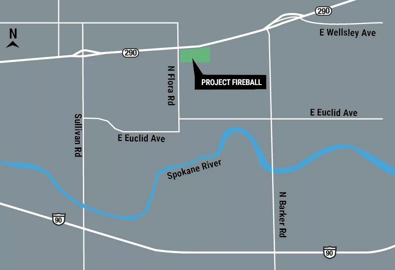 A building permit application for Project Fireball is for a foundation for a 1.3 million-square-foot building at 17205 E. Garland, in an industrial area of Spokane Valley. The approved engineered grading permit states that the work is for a "warehouse building with site improvements."