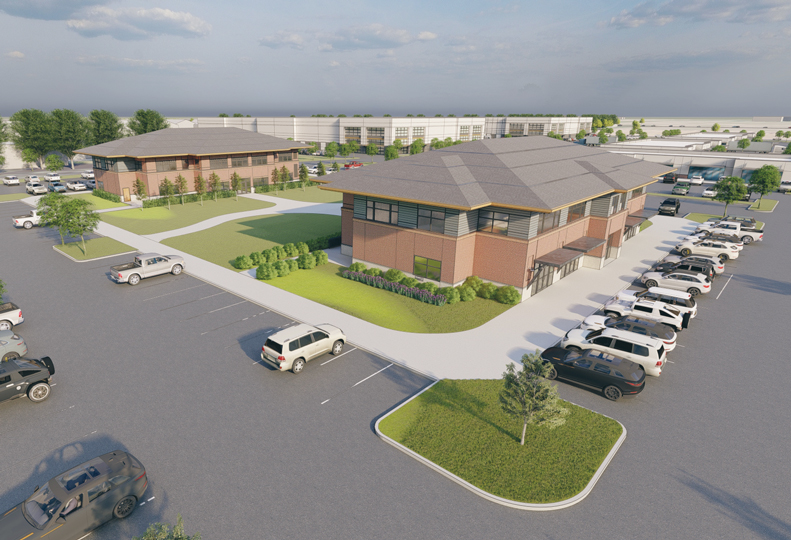 Updated designs call for two industrial warehouses about 85,000 square feet in size, two 25,000-square-foot office buildings, and either one 17,000-square-foot flexible building or two flex buildings with about 6,000 square feet of space in each structure.