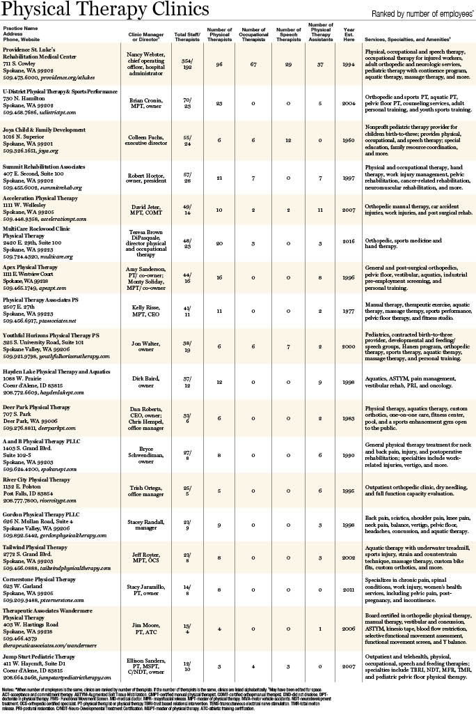 Book of Lists Digital Version - Physical Therapy Clinics