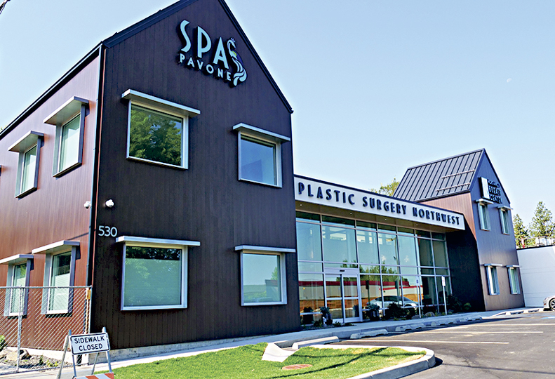 Located at 530 S. Cowley, about a block north of Providence St. Luke's Rehabilitation Medical Center, Plastic Surgery Northwest's revamped building now has dedicated entrances for it's medical spa, dubbed Spa Pavone, and at the breast center and surgical center.