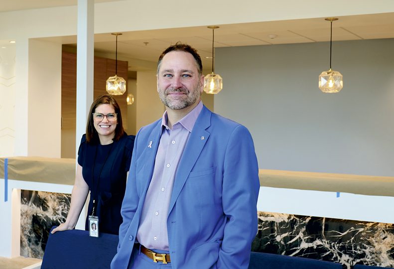 Plastic Surgery Northwest director of operations Audrey Snyder, left, and co-owner Dr. Chad Wheeler show off the updated lobby that's intended to elevate client's expectations of the quality of care they'll receive at the surgery center.