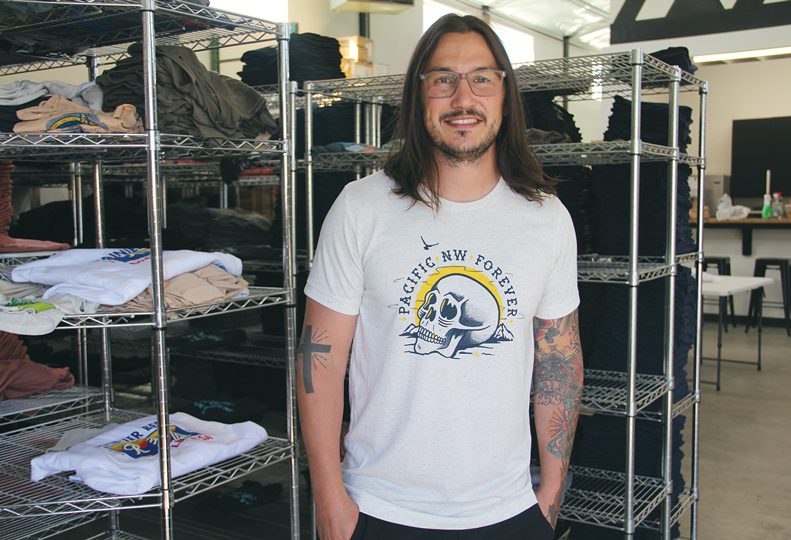 “There are a lot of people around him, but so much—from the designs to day-to-day operations to marketing—all comes back to him,” Ervin says. “For a long time, every single design that was put out by The Great PNW was his artwork only.”