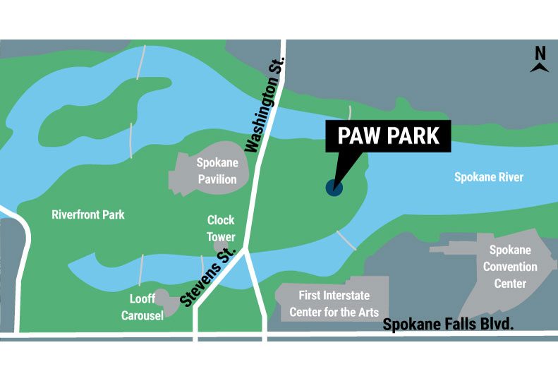 Paw Park, as it has been named, will be located on nearly 1 acre of space at the east end of Havermale Island in Riverfront Park, next to the Lilac Bowl and about a quarter-mile east of the iconic U.S. Pavilion.