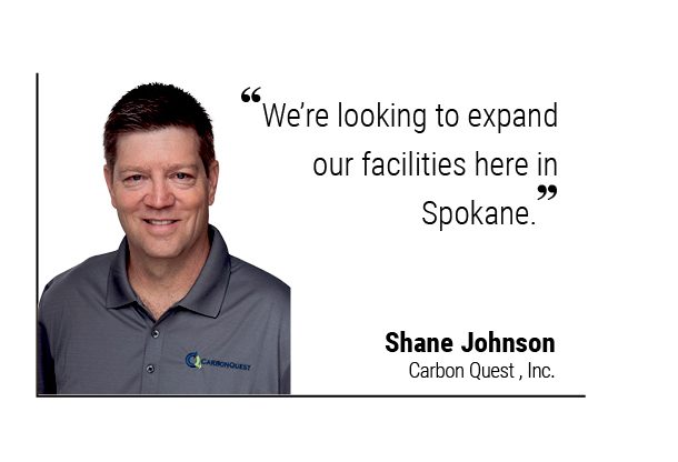 The company's headcount has already grown from 25 last August to 38 this month, Johnson says. CarbonQuest plans to staff up to 60 total employees by the end of the year at its Spokane Valley headquarters located at 3010 N. First, just south of the Spokane Business & Industrial Park.