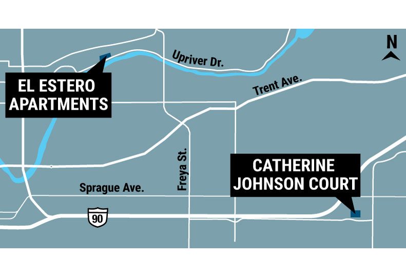 The two low-income housing sites are El Estero Apartments, centered at 2130 E. North Crescent just north of the Spokane River in East Spokane, and Catherine Johnson Court, located at 6321 E. Fourth in Spokane Valley.