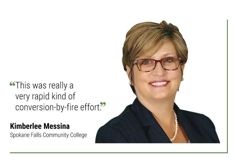 At Spokane Falls Community College, President Kimberlee Messina says that the school’s existing online program created a solid foundation to build upon as more programs shifted online.