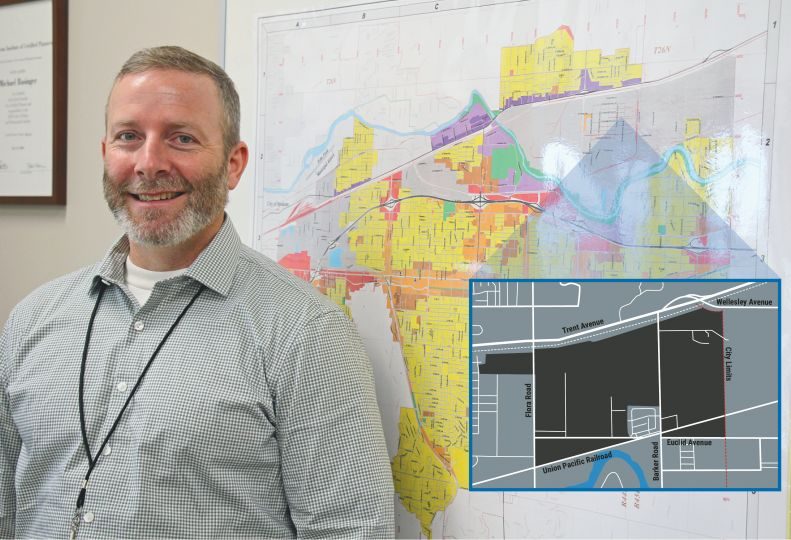 The 840-acre area--bounded by Flora Road to the west, Trent Avenue to the north, and the Union Pacific line to the south--currently boasts over 560 acres of undeveloped land zoned for industrial use.