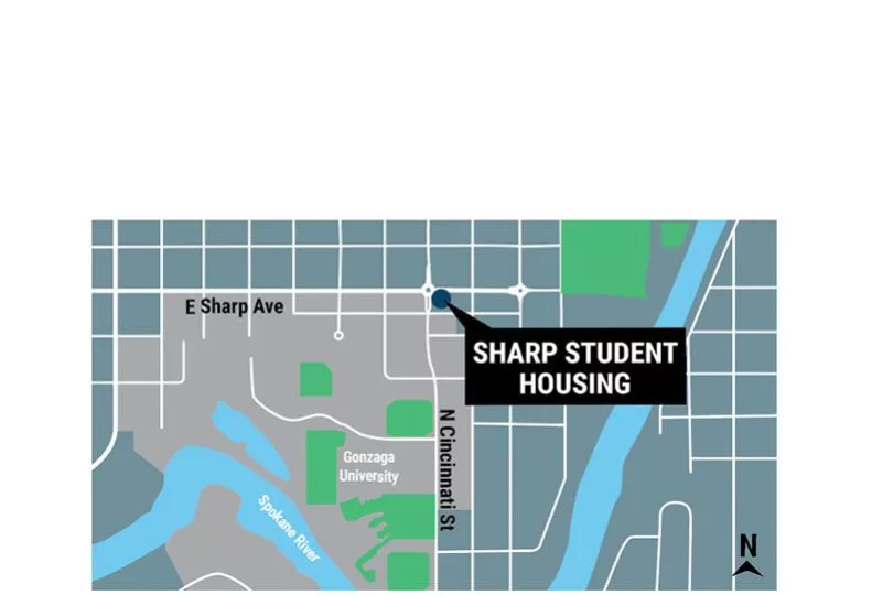 According to Spokane County Assessor’s records, Gonzaga purchased one of the parcels located at 814 E. Sharp, on the development site, in 2008 for $340,000. The same entity bought the parcel located on the adjacent parcel at 808 E. Sharp in March 2016 for $400,000. The university also owns the parcel at 802 E. Sharp, but readily available records don’t indicate when it was purchased.