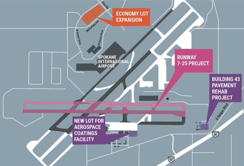 Spokane International Airport representatives say this month marks the start of four construction projects, including routine runway and taxiway maintenance, two new parking lot expansions, and tenant improvements with a total cost of nearly $24.1 million.