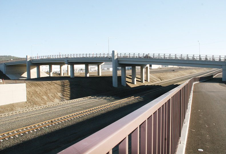 The $31 million Burlington Northern Santa Fe railway realignment project was finished in October, having begun in 2013. The project included realigning seven miles of rail line and building two freeway bridges and two pedestrian bridges, as well as extending the Children of the Sun trail into the Hillyard neighborhood. Apollo Inc., of Kennewick, Wash., was the contractor for that project.