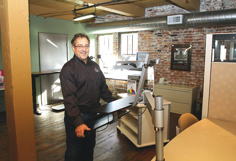 “Cubicles are disappearing. Businesses want their staffs working more collaboratively which means opening office spaces,” Mangano says. “You walk in offices now and see people standing up doing the work. That’s just better for your body.”