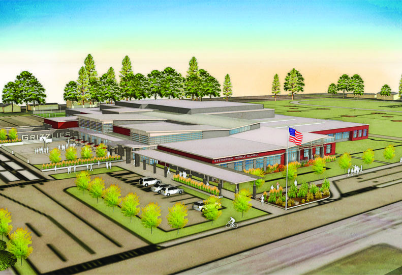 Also planned (see rendering on section cover) is a $31.3 million renovation and expansion of Evergreen Middle School, designed by ALSC, and an $18.4 million renovation and expansion of Ponderosa Elementary School.