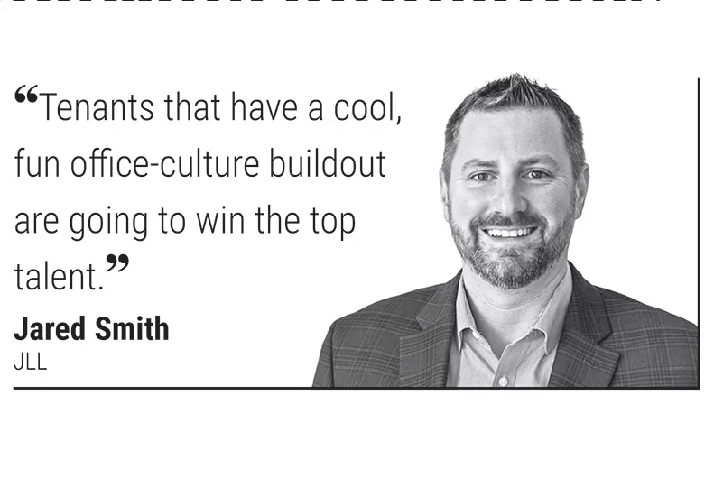 “There’s such a war for talent right now, and (tenants are) so concerned about rent cost,” Smith says. “But if you look at it holistically, the tenants that have a cool, fun office-culture buildout are going to win the top talent, because they’re going to come in, they’re going to see the space, and it’s going to be a pride thing.”