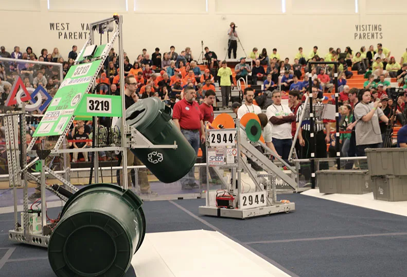 “This program is just an amazing program that connects kids ages 6 to 18 to science and technology,” McCallum says. “It’s STEM (science, technology, engineering, and mathematics) in action. The robot is the shiny object that excites the kids … and the sport, competitive environment also makes it exciting.”