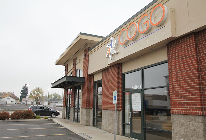 As of last week, a hand-printed sign posted on the locked door of Cogo Capital’s former Spokane office said the space has been converted to a training facility and lists a toll-free number for loan inquiries.