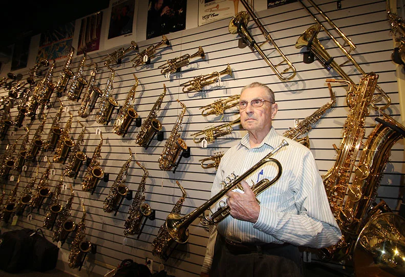 "I was pretty much janitor and apprentice instrument repairman," Smith says. Earlier, when Smith was around 12 years old, he took trumpet lessons at the store.
