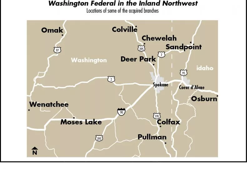 After it takes ownership of branches in small markets in Eastern Washington and North Idaho late this year, the company expects to expand into the Spokane-Coeur d'Alene area, says Washington Federal President and CEO Roy Whitehead.