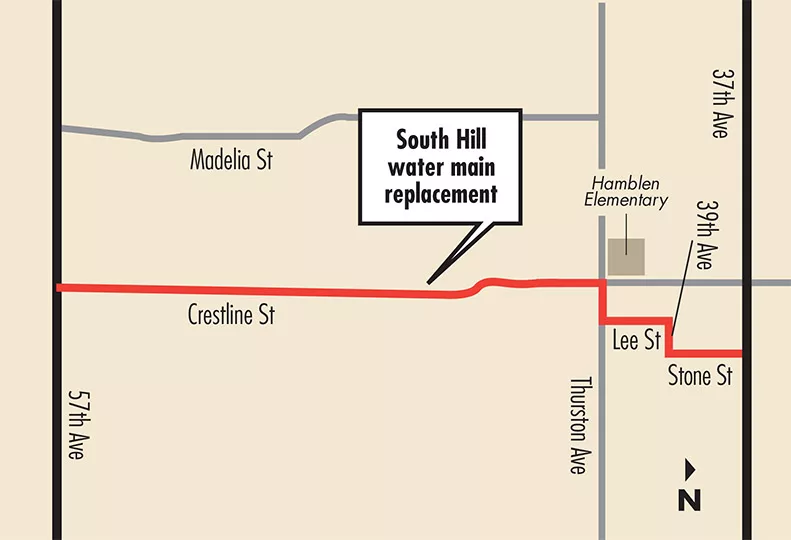 The project will be funded through a combination of city water and sewer funds and real estate excise tax proceeds. A portion also will be funded through 10-year street bond program utility match funds, Happy says. Spokane County will contribute to the project, as Crestline Street between 53rd and 57th avenues is outside city limits.