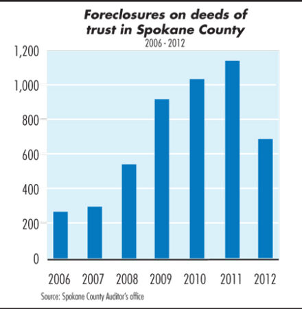 Last year, the Spokane County Auditor's Office recorded 685 foreclosures on deeds of trust, down a whopping 38 percent from 1,112 foreclosures a year earlier, and the lowest annual total since 2008, when the county recorded 560 foreclosures on deeds of trust. A deed of trust is a document that pledges real property to secure a loan.