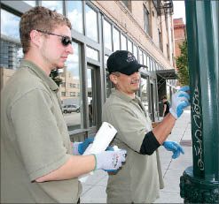 In downtown Spokane, any graffiti that occurs in an 80-block area designated as the Business Improvement District, stretching between Maple and Browne streets and North River Drive and the railroad viaduct, is managed by the Downtown Spokane Partnership.