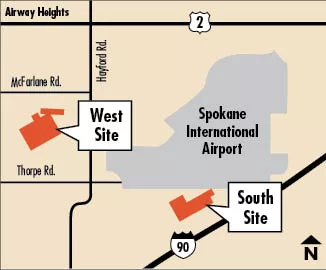 The West Site is within a nearly10-square-mile area of the West Plains that the city of Spokane annexed on Jan. 1. The site could include multiple structures, taxiways, and future connection to a nearby rail line for aircraft assembly or fabrication of composite parts shipped by truck, rail, or air. Anticipated road infrastructure upgrades include improvements to the Geiger and Medical Lake interchanges with Interstate 90, and eventual rerouting of Hayford Road to accommodate a third airport runway.