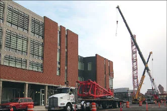 Graham Construction & Management Inc., of Spokane, erects a tower crane along Spokane Falls Boulevard for construction of the $78 million Washington State University Biomedical and Health Sciences Building. The contractor expects to be erecting steel beams for the project this spring. Once completed, the building is slated to house the WWAMI Medical Education Program and WSU Medical Sciences.