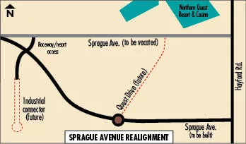 The project first will involve relocating an existing, 3,000-foot-long portion of Sprague located south of the casino, between Hayford Road and the Washington state Department of Correction's Airway Heights Corrections Center property, at 11919 W. Sprague. The new road will be rebuilt 800 feet south of the current Sprague-Hayford junction, and gradually will curve north and west to meet the current stretch of Sprague that borders the prison, Haugen says.