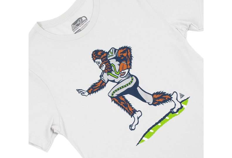 The Squatchback T-shirt, as the name suggests, is the fabled sasquatch in a Seahawks uniform running through the football field with a ball in his arm. Thus far, it’s the most popular item being sold.