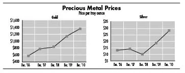 Metals prices continued to be strong this year, and in some cases jumped significantly, allowing Inland Northwest mining companies to improve cash flows and to have the confidence to pursue new development. No one seems to think that will change in 2011.