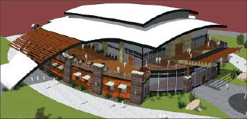 Preliminary renderings of the building, designed by Womer & Associates Inc., an architectural and engineering company here, show a two-story structure with lots of glass and a rounded, rippled roofrepresenting waterthat would extend down to the ground on its sides.