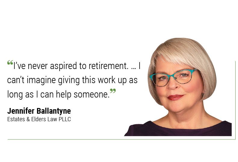 As for the rewards of practicing elder law, Ballantyne says it’s more about intangible dividends.
