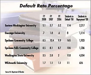The student-loan default rate is on the rise at some Inland Northwest colleges, though institutions here remain below the national rate, the latest available data show and education officials here confirm. That generally upward trend, combined with