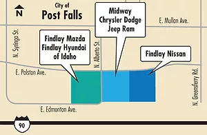 Midway Automotive Group Inc. has sold its Nissan auto dealership in Post Falls to Henderson, Nev.-based Findlay Automotive Group, and plans to focus on its recently expanded and remodeled Chrysler Dodge Jeep Ram dealership next door, says Joe marks
