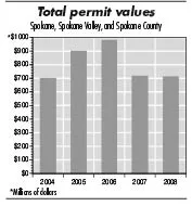 The total value of Spokane-area construction activity held relatively steady in 2008, with nonresidential projects offsetting a steep decline in new-home construction. Some industry observers say, though, that the pace of commercial construction in