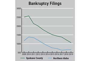 The number of bankruptcy filings in Eastern Washington decreased for the ninth straight year in 2019, U.S. Bankruptcy Court figures show.