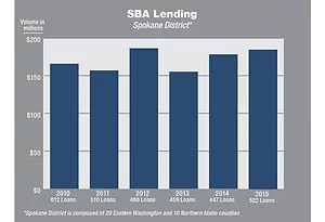 In 2015, lenders in the Spokane branch of SBA's Seattle district issued 522 SBA-backed loans totaling $183 million,
