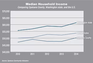 Household median income in Spokane County rose at a higher rate in 2014 than statewide or national rates for such growth, although the county still lags behind both in other income and wage measures, says Patrick Jones, executive director of Eastern Washi