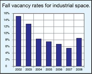 Vacancy rates for industrial space in the Spokane area have jumped sharply after five straight years of declines, a recent survey shows.The fall vacancy survey conducted by the Spokane real estate appraisal firm Auble, Jolicoeur & Gentry put the