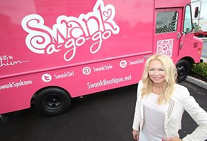Jody Mallonee, owner of Swank Boutique Inc. in north Spokane, is driving women's fashion to new customers, literally, by taking to the streets with a bright pink former tool truck that holds a sampling of the store's merchandise. Called Swank to