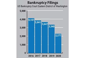 Despite the economic havoc COVID-19 brought on wide swaths of the economy last year, the pandemic's presence didn't halt the downward trend of bankruptcy filings in Eastern Washington.