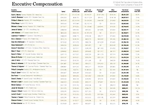 The number of Inland Northwest-based publicly traded companies is shrinking, but for the executives at the corporations that remain, total compensation grew substantially in 2014, the Journal of Business annual analysis shows.